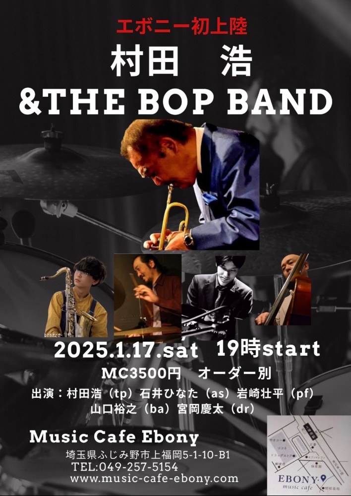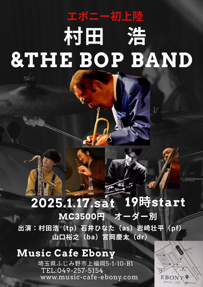 村田浩 & THE BOP BAND村田浩(tp)石井ひなた(as)岩崎壮平(pf)山口裕之(ba)宮岡慶太(dr)MC3500円オーダー別