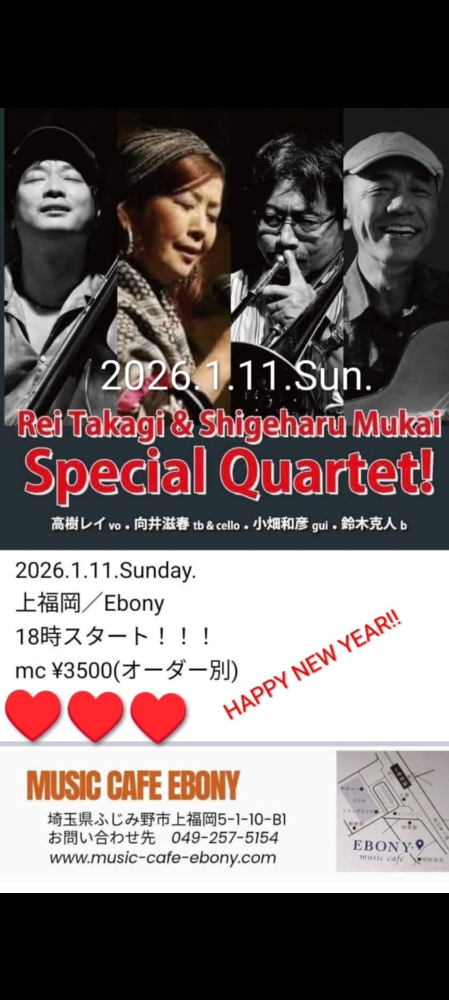 New Year,s Jazz Live高樹レイ(vo)向井滋春(tb)小畑和彦(gt)鈴木克人(ba)MC3500円オーダー別