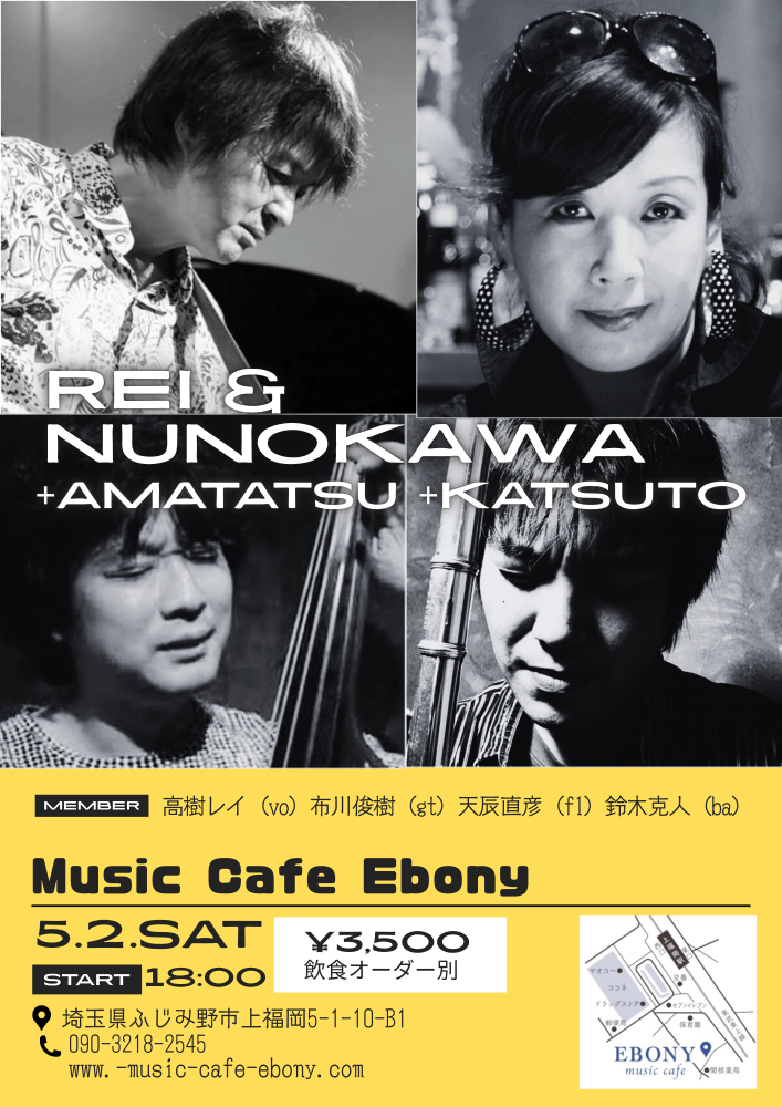 エボニージャズライブ高樹レイ(vo)布川俊樹(gt)天辰直彦(fl)鈴木克人(ba)MC3500円飲食オーダー別